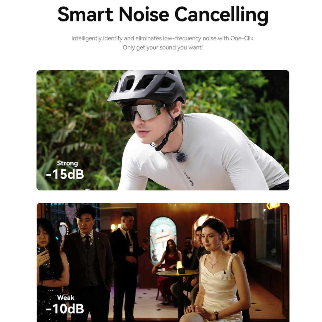 Create noise-free audio in any environment. The built-in Advanced ENC algorithm intelligently reduces unwanted background sounds such as wind, traffic, crowds, and machinery noise. This makes the LARK M2S a perfect choice for vlogging, travel content, outdoor shoots, campus recordings, and interviews in noisy surroundings.